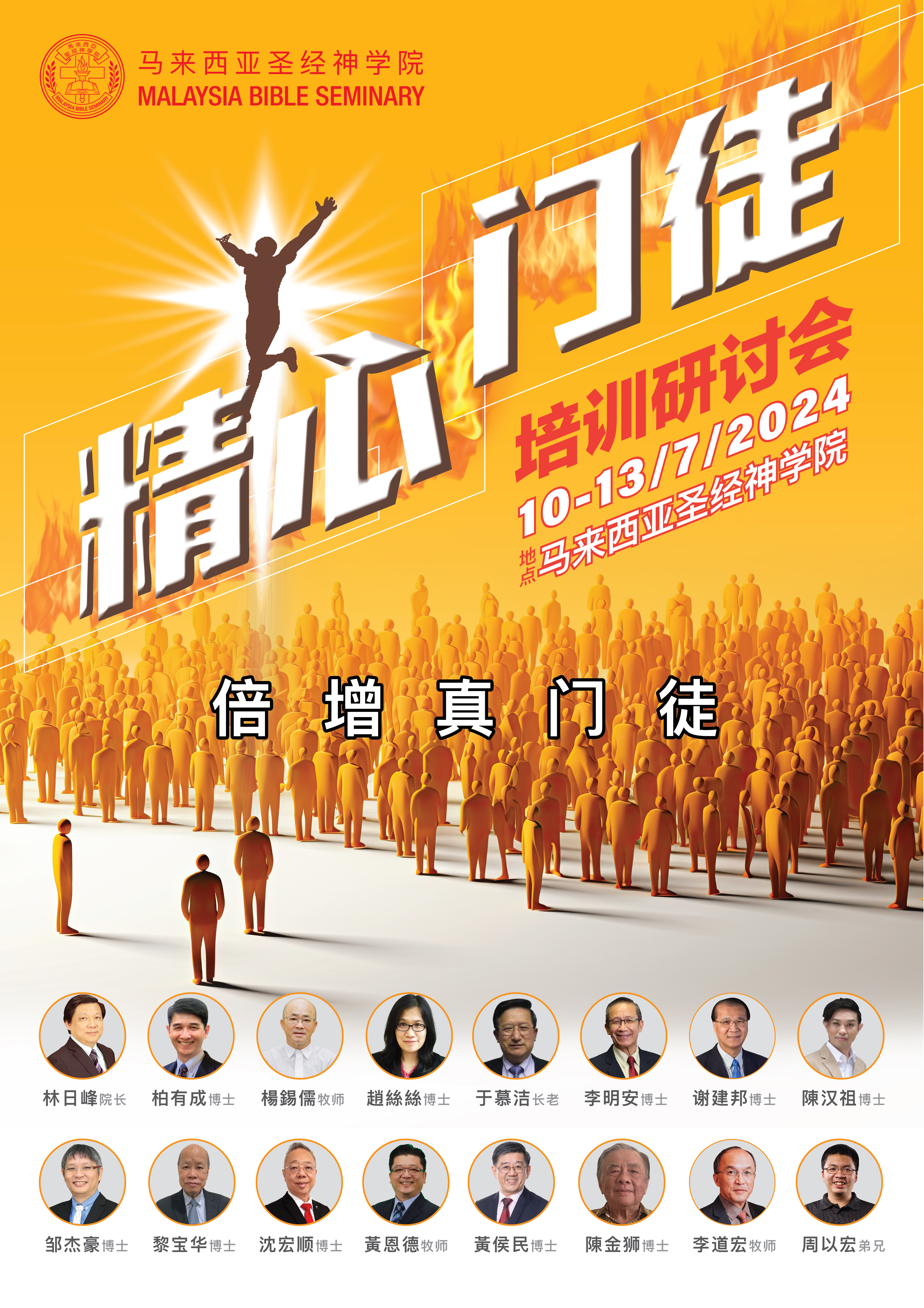 感谢神,去年马圣所举办的“精心门徒培训研讨会”得到良好的回应,故此马圣今年也将会继续举办第二届的“精心门徒培训研讨会”。 特此诚邀贵教会牧者、教会领袖、长执、同工及弟兄姐妹们参与。 详情如下: 日期:2024年7月10-13日 地点:马来西亚圣经神学院 报名:https://bit.ly/2024IDMC-ChineseMAS 欲知更多详情或询问,请联络: * 注册(本地)WhatsApp +6018-966 1437 / Email: mbs.joannemoi@gmail.com (魏玉清姐妹) * 注册(国外)WeChat ID: wyd20140801 / Email: wangcaleb258@gmail.com(王一志老师)