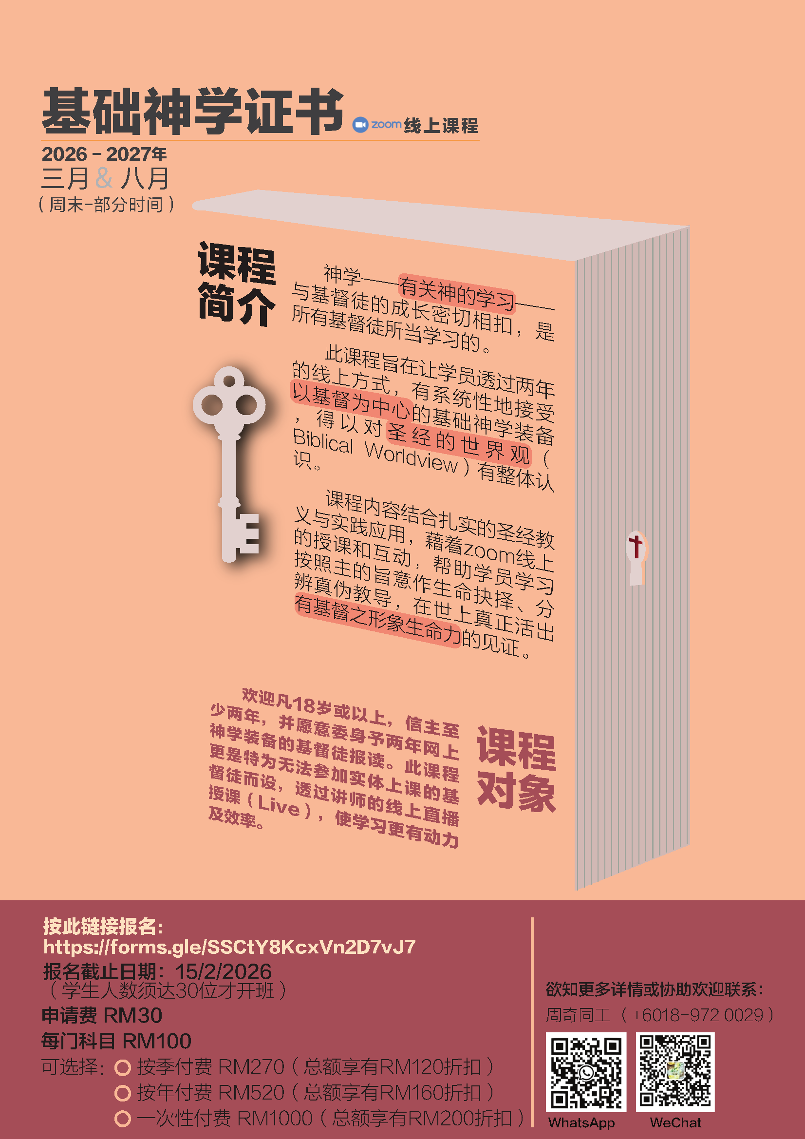 我们欢迎满18岁以上,至少信主两年,原意委身两年线上受装备的弟兄姐妹来报名!