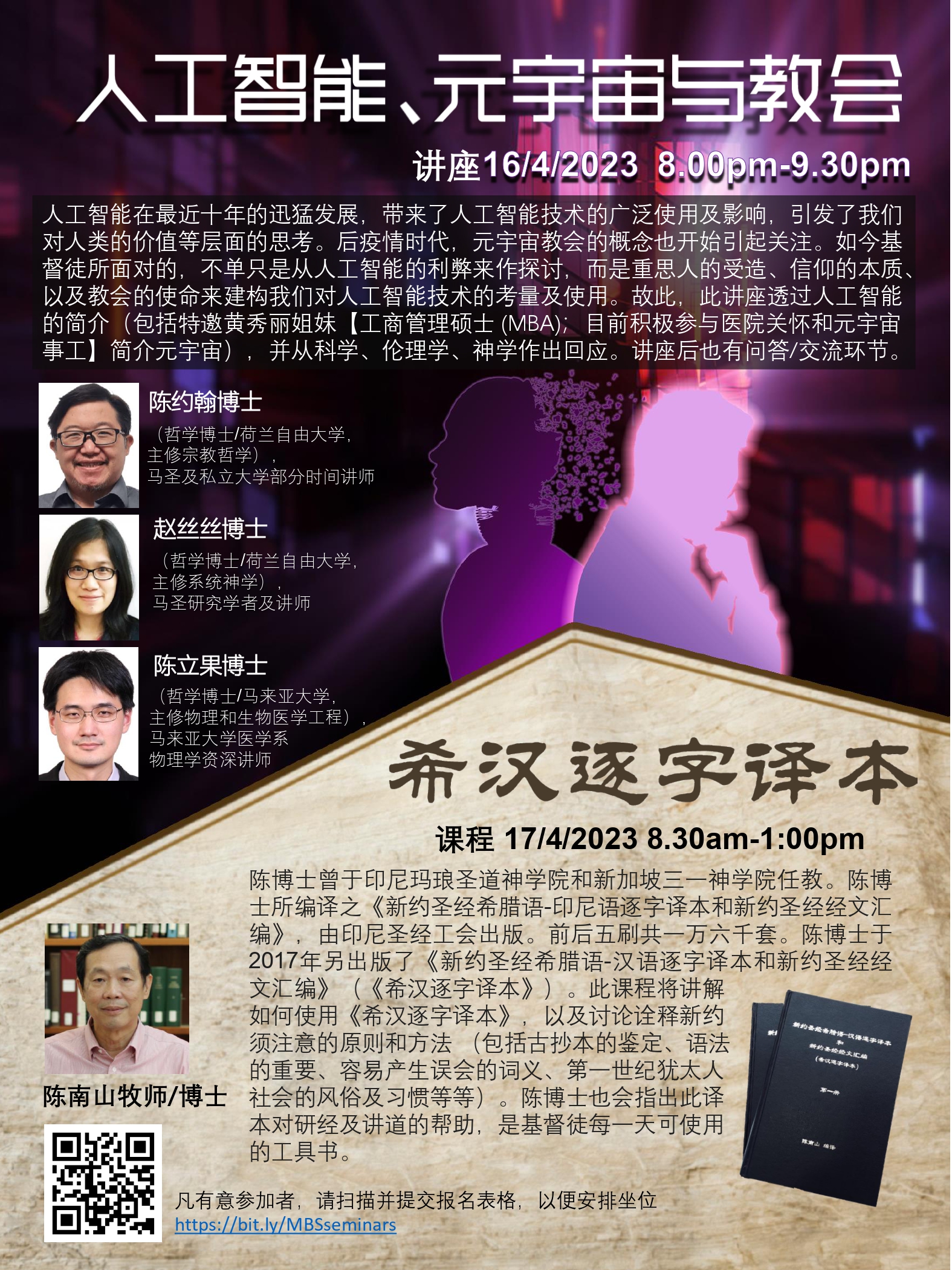《人工智能、元宇宙与教会》讲座 & 《希汉逐字译本》课程